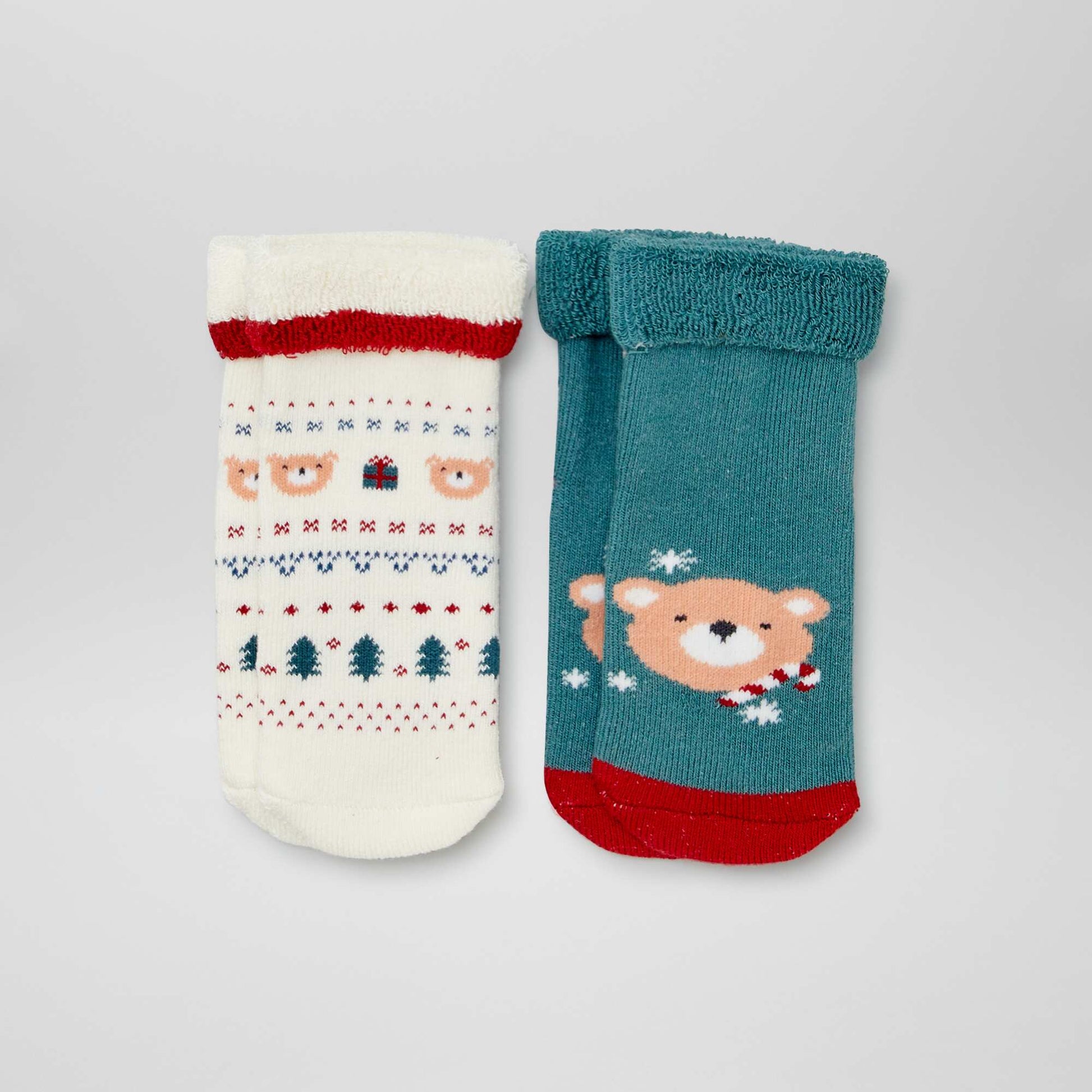 Chunky knit Christmas socks - Pack of 2 GREEN